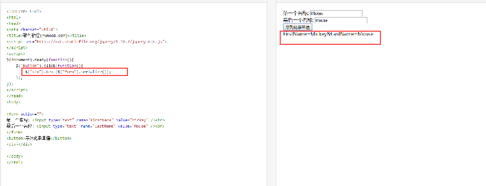 JQuery serialize() 方法将表单多元素一次性传递 所属分类:代码类 发布时间:2024-02-27 02:04:59 serialize() 方法通过序列化表单值创建 URL 编码文本字符串。您可以选择一个或多个表单元素(如输入和/或文本区),或表单元素本身。序列化的值可在生成 AJAX 请求时用于 URL 查询字符串中 上一条:JS一个变量传参变成一个传参数组的写法 下一条:Thinkphp的where方法的使用