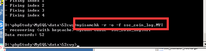 处理办法为先将mysql目录下的bin目录下的myisamchk.exe复制到有问题的数据库目录里。